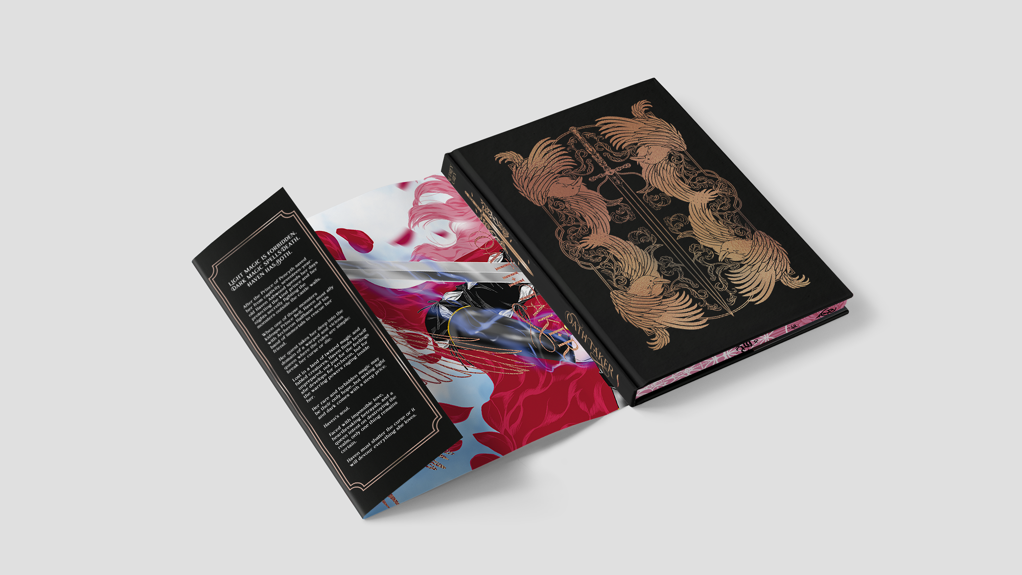 “Kingdom of Runes” series by Audrey Grey, exclusive redesigned dust jacket, illustrated reverse dust jacket, sprayed edges, foiled hardcase design and end page illustration. Featuring rose gold foil through out. Luxe editions for The Bookish Box (2023).